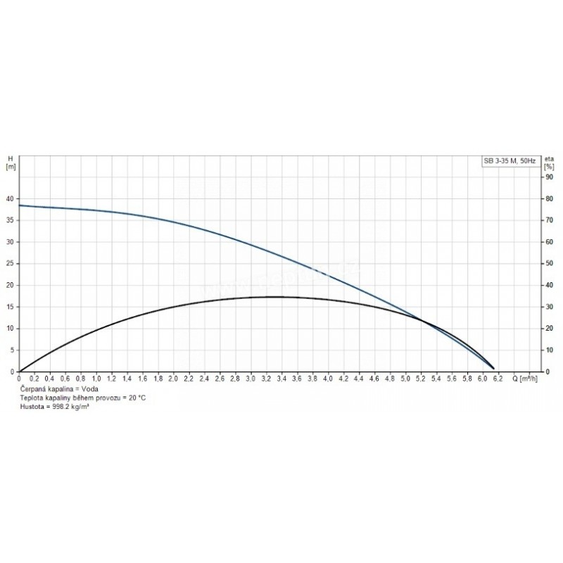 SB 3-35 M je vybaven přívodním kabelem 15 m a maximální hloubka instalace je 10 m pod hladinou vody, s teplotou kapaliny v rozmezí od 0 °C do 40 °C.