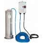 Čerpadlo v provedení na jednofázový střídavý proud s integrovaným plovákovým spínačem (FS), připojovacím kabelem, rozvaděčem (IP55) s termickým jištěním motoru, spínač ZAP/VYP, 2 m připojovací kabel s ochranným kontaktním konektorem.