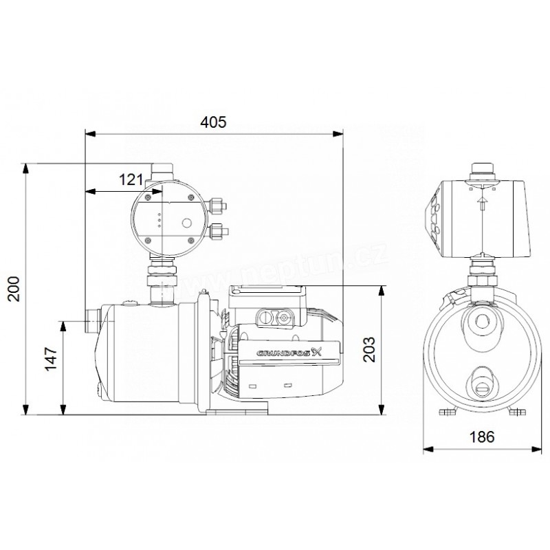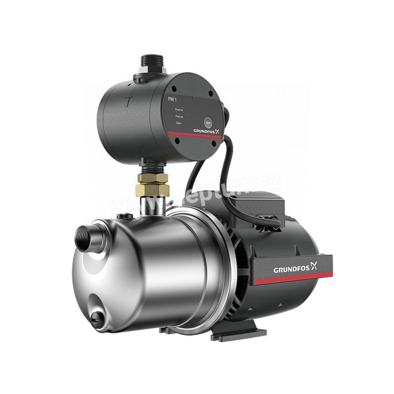 Posilovací stanice Grundfos JP 4-47 PM1 se skládá z čerpadla Grundfos JP a správce tlaku. JP 4-47 PM1 poskytuje komfort konstantního tlaku vody s automatickým spouštěním a zastavováním přizpůsobeným spotřebě inteligentním tlakovým spínačem. Tlakovým spínačem spustí čerpadlo s tlakem 1,5 baru a čerpadlo pokračuje v činnosti, dokud je průtok.
