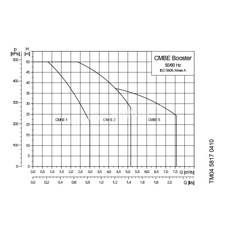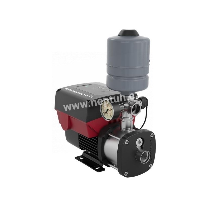 Posilovací stanice CMBE 3-62 I-U-C-C-D-A je kompaktní posilovací stanice určená pro zásobování vodou v domácnostech. Integrovaný systém regulace otáček umožňuje, aby tlaková stanice CME udržovala konstantní tlak v celé potrubní soustavě. Tlakový snímač, který monitoruje změny v odběrném množství vody, vysílá signál na regulátor otáček, který iniciuje změnu otáček motoru tak, aby čerpadlo přizpůsobilo svůj výkon nové provozní situaci. Instalace posilovací stanice CMBE je velmi snadná. Po připojení potrubí stačí zastrčit zástrčku napájecího kabelu do síťové zásuvky a stanice je připravena k provozu.