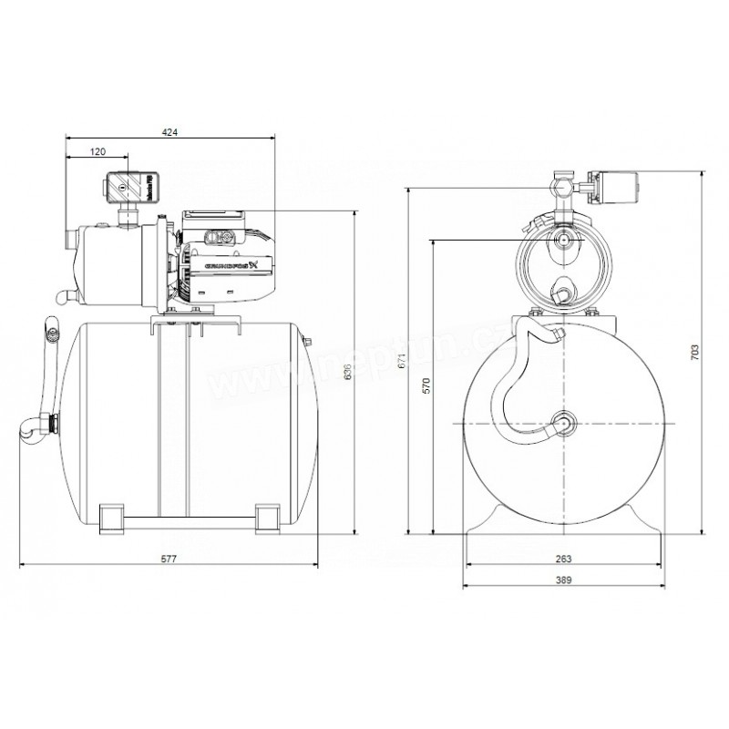 Grundfos JP 5-48 PT-H se skládá z čerpadla Grundfos JP, tlakového spínače, manometru a horizontální membránové tlakové nádoby Grundfos GT-H o objemu 20 nebo 60 litrů. Posilovací sada je vybavena dvojím vývodem pro snadnou instalaci a tlakovou nádobou pro snížení vodních rázů v potrubí.