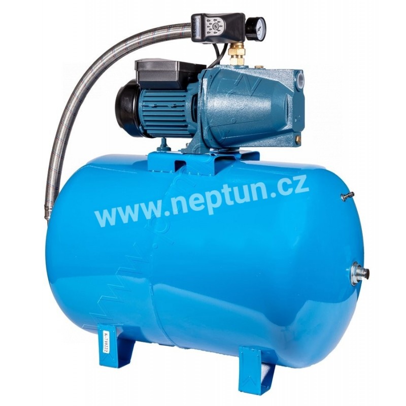 Domácí automatické vodárny s nádobou Pumpa. Pro zásobování užitkovou vodou ze studní, pro použití v rekreačních objektech, na zahradách a pro zavlažování. Maximální schopnost sání 8 m.