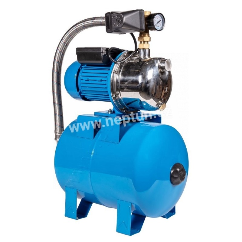 Domácí automatické vodárny s nádobou Pumpa. Pro zásobování užitkovou vodou ze studní, pro použití v rekreačních objektech, na zahradách a pro zavlažování. Maximální schopnost sání 8 m.