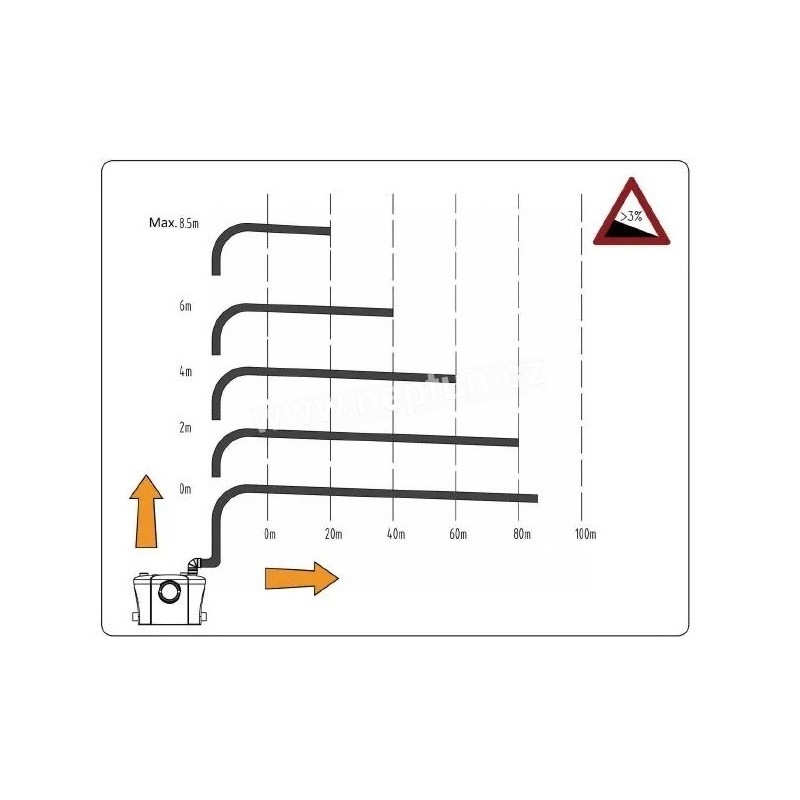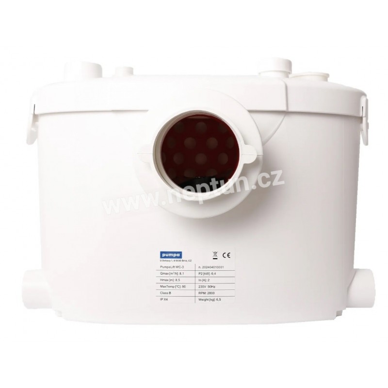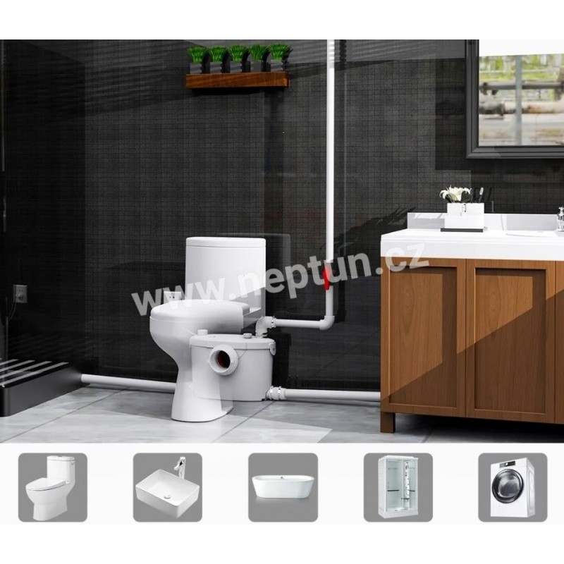 Kompaktní přečerpávací zařízení je určeno pro přečerpávání odpadní vody ze sprchového koutu, umyvadla a/nebo bidetu a splašků z WC pod úrovní kanalizace nebo v souvislosti s rekonstrukcí nebo modernizací stávajících budov, kde nelze vytvořit přirozený spád potrubí.