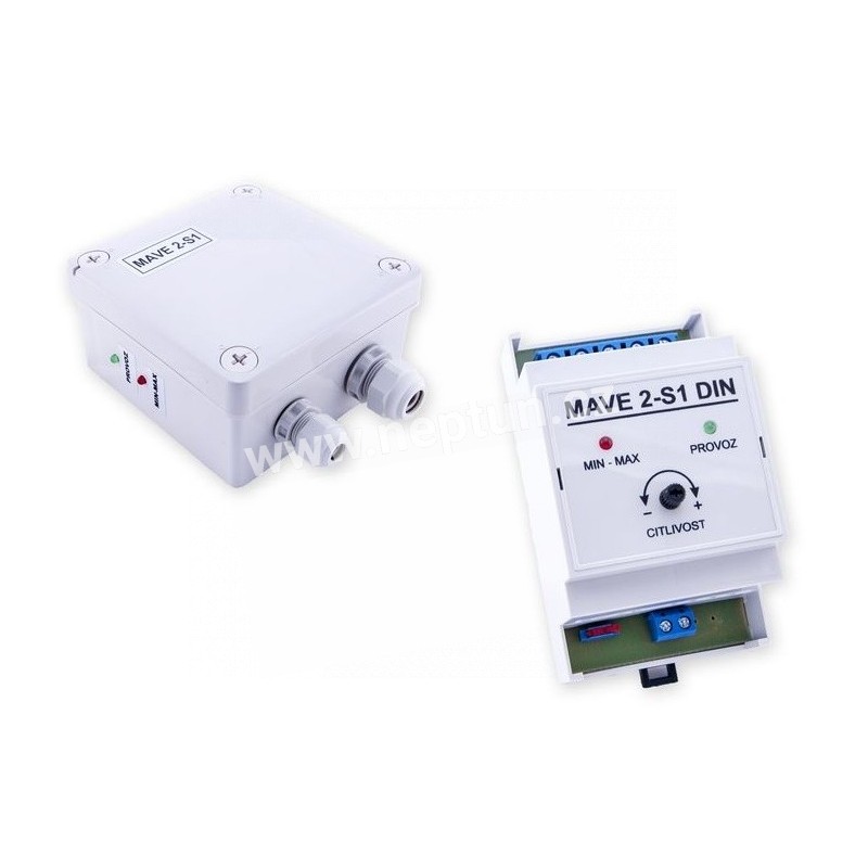 Snímače hladiny MAVE 2-S1 se vyrábějí v provedení pro vnější montáž na pevnou podložku nebo pro montáž do rozvaděče na DIN lištu 35 mm (označení DIN).