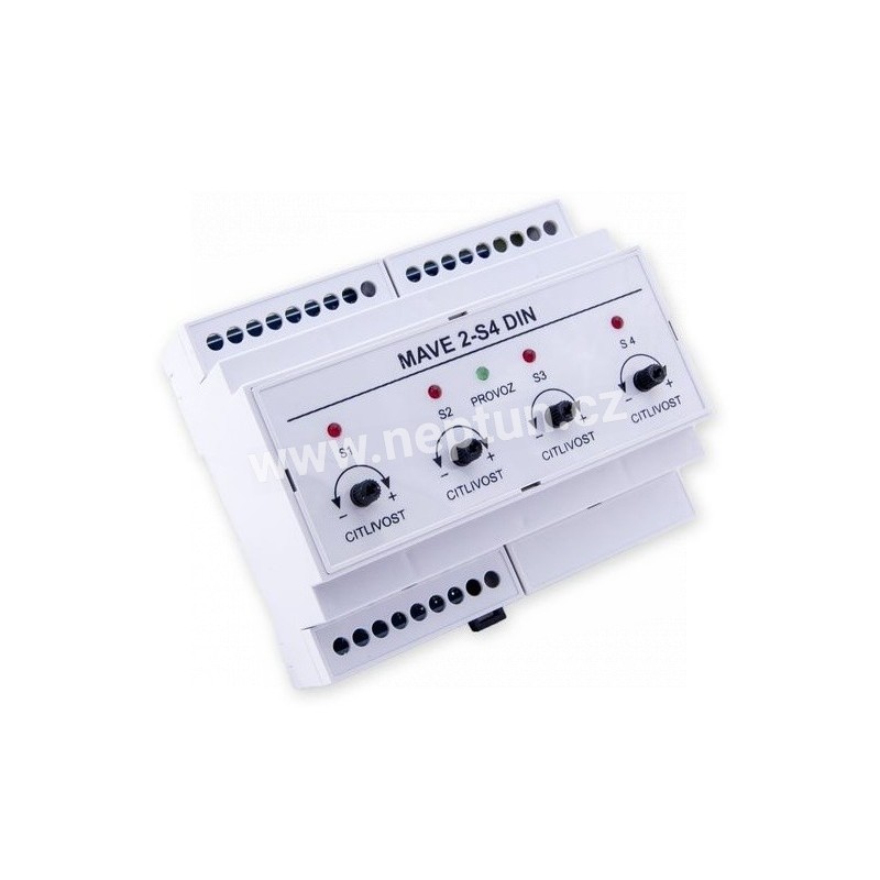 Snímač nahrazuje funkce čtyř samostatných snímačů MAVE 2-S1. Pro každý obsahuje izolované přepínací kontakt relé na výstupu a možnost nastavení vstupní citlivosti snímání. Slouží pro limitní snímání čtyř nezávislých havarijních hladin (minimální nebo maximální).