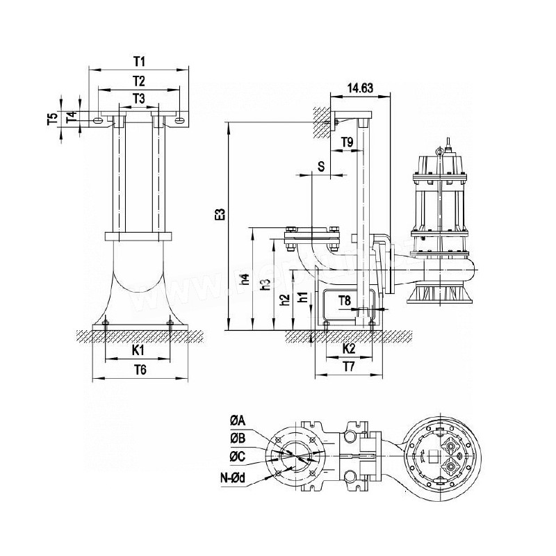 Spouštěcí zařízení s automatickou spojkou obsahuje patní koleno, přírubu a držák vodících tyčí. Vodící tyče nejsou součástí dodávky.