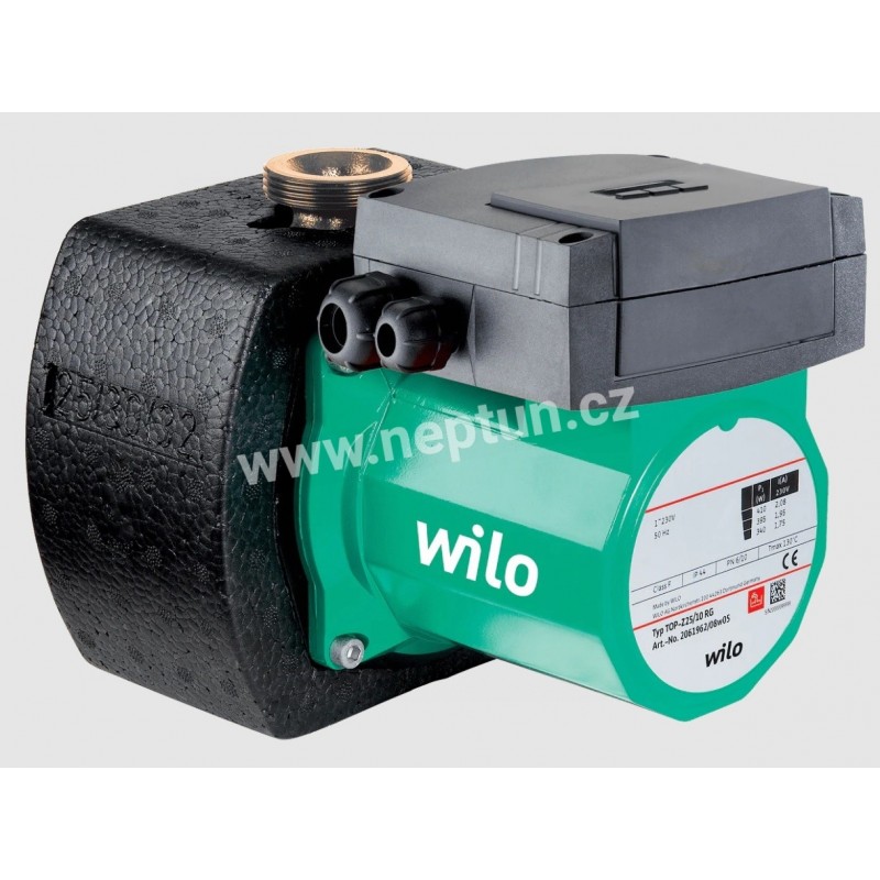 Mokroběžné oběhové čerpadlo s připojením na závit nebo na přírubu, předvolitelné stupně otáček pro nastavení výkonu.